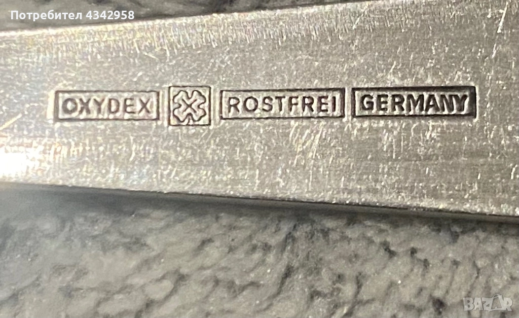 Произведен в Германия, маркировка OXIDEX – ROSTFREI – GERMANY, което показва висококачествена неръждаема стомана.