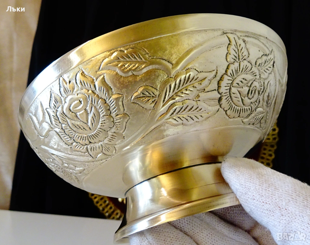 Стара повдигната бронзова фруктиера,бонбониера,купа,съд за