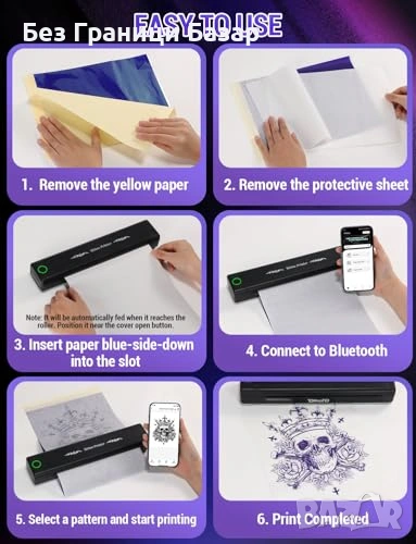 Нов Преносим тату шаблон принтер без мастило Android iOS с трансферна хартия