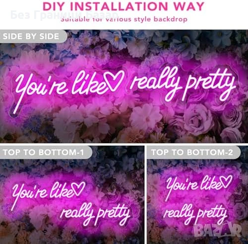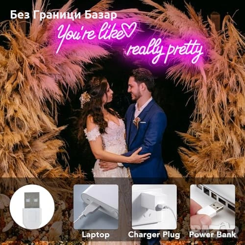 Нов LED неонов надпис You're Like Really Pretty 82см розов USB знак стена
