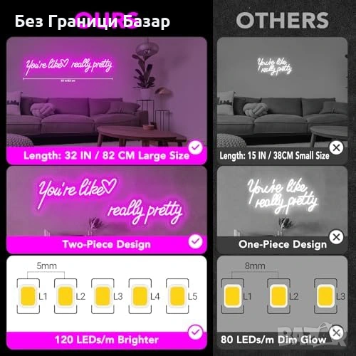 Голям неонов LED надпис „You're Like Really Pretty“ с дължина 82 см