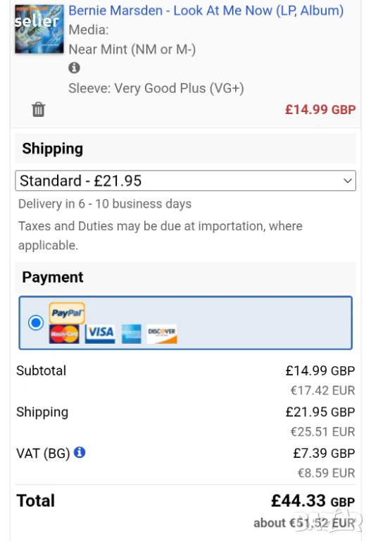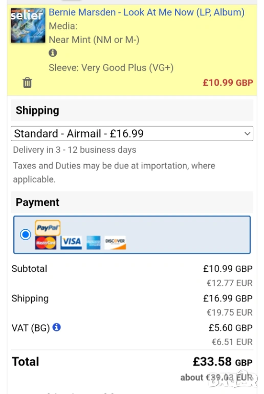 Състояние на обложката:VG+