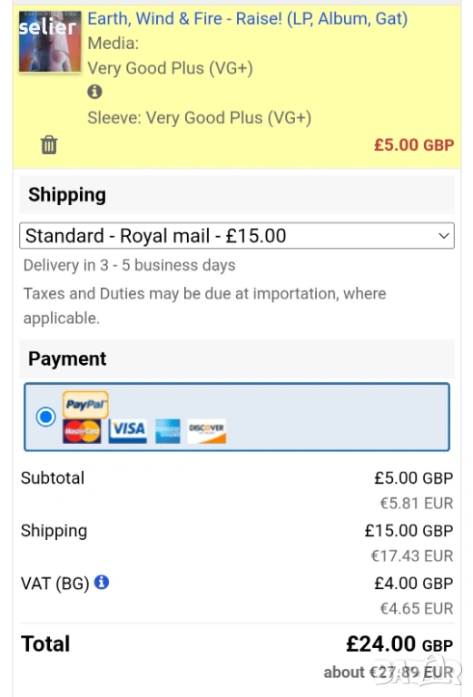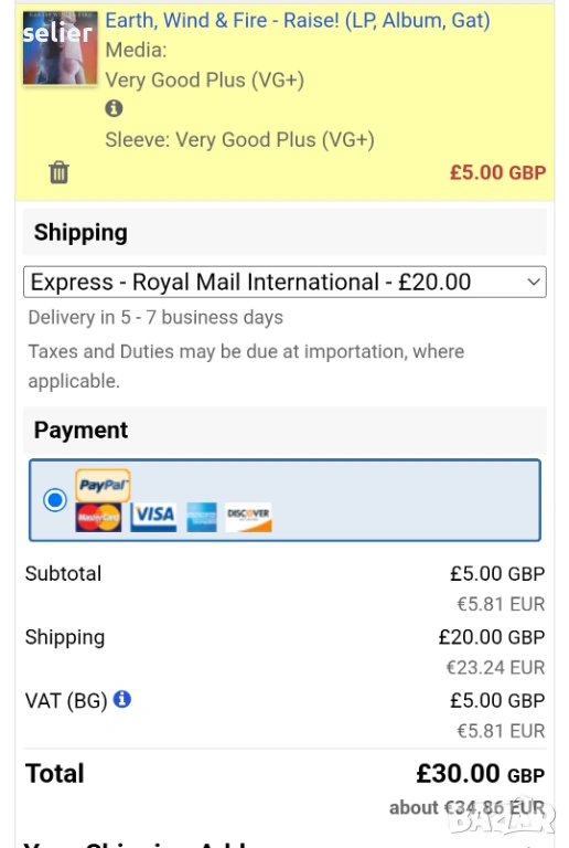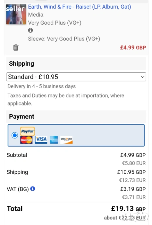 Състояние на обложката:VG+