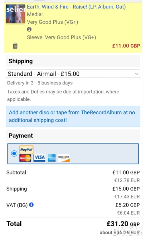 Състояние на винила:едната страна е VG++,другата е VG+