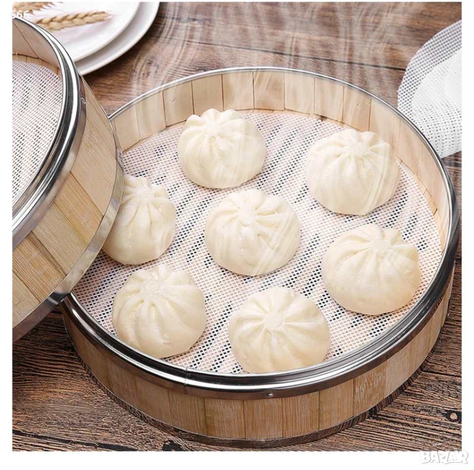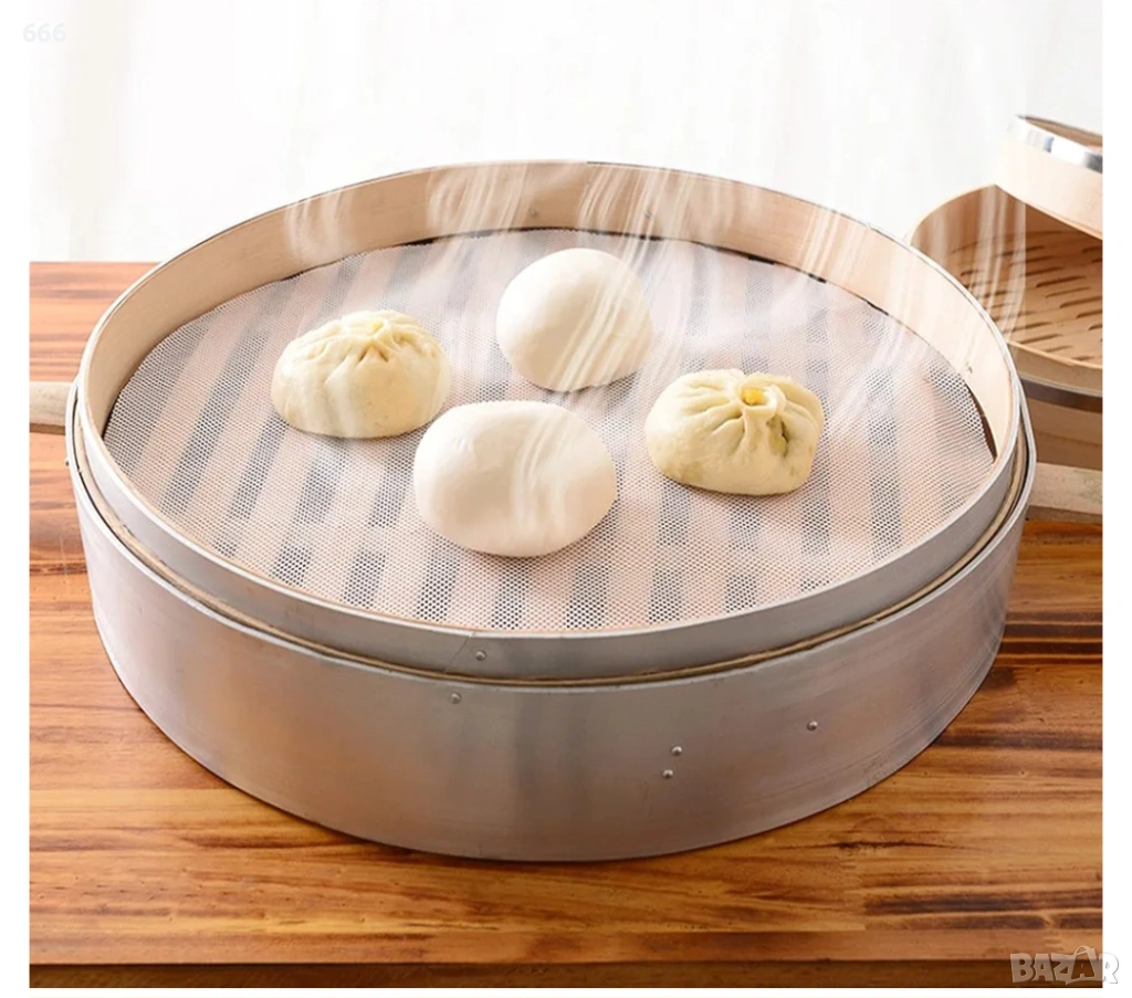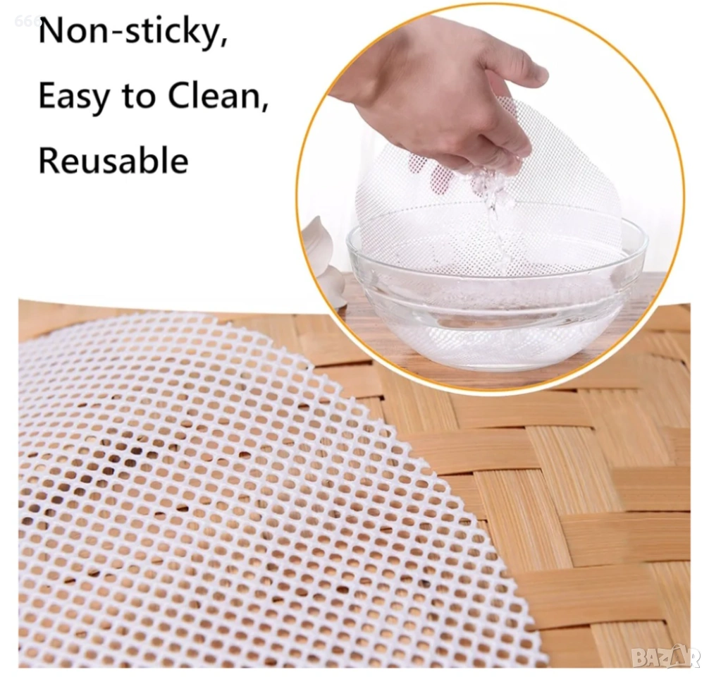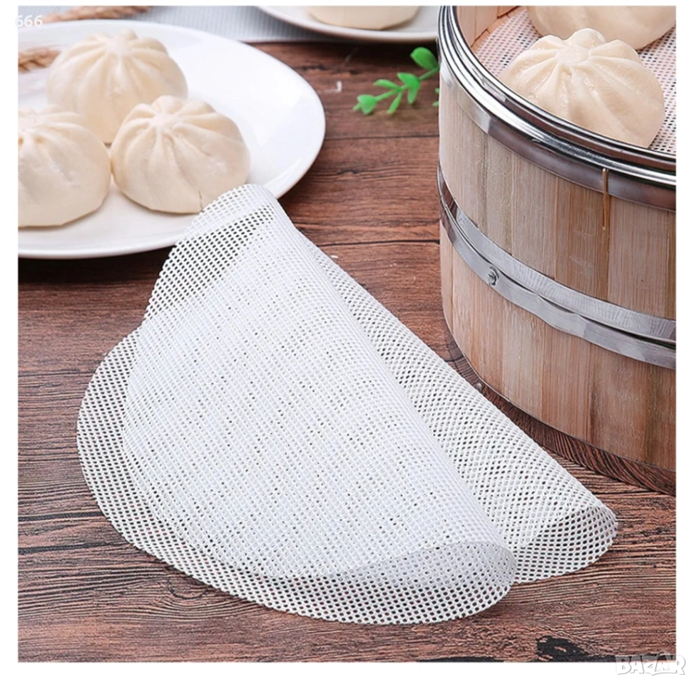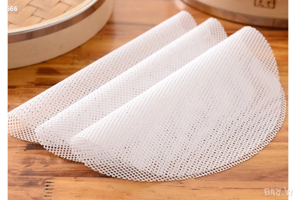 Силиконовата подложка за готвене на пара не е мазна, не залепва за тестото и изолира храната от уреда за готвене на пара. Лесна е за почистване и може да се използва многократно.