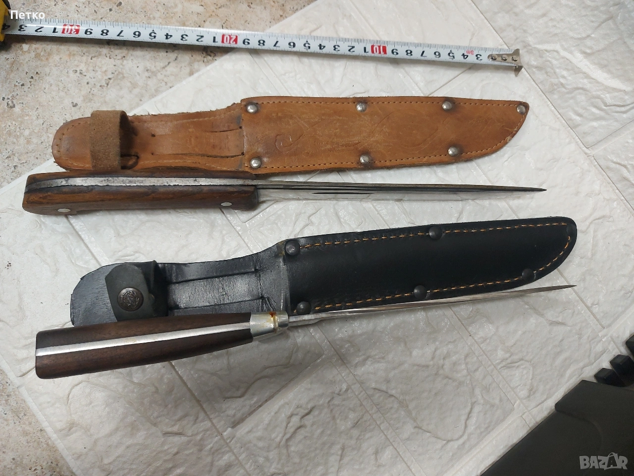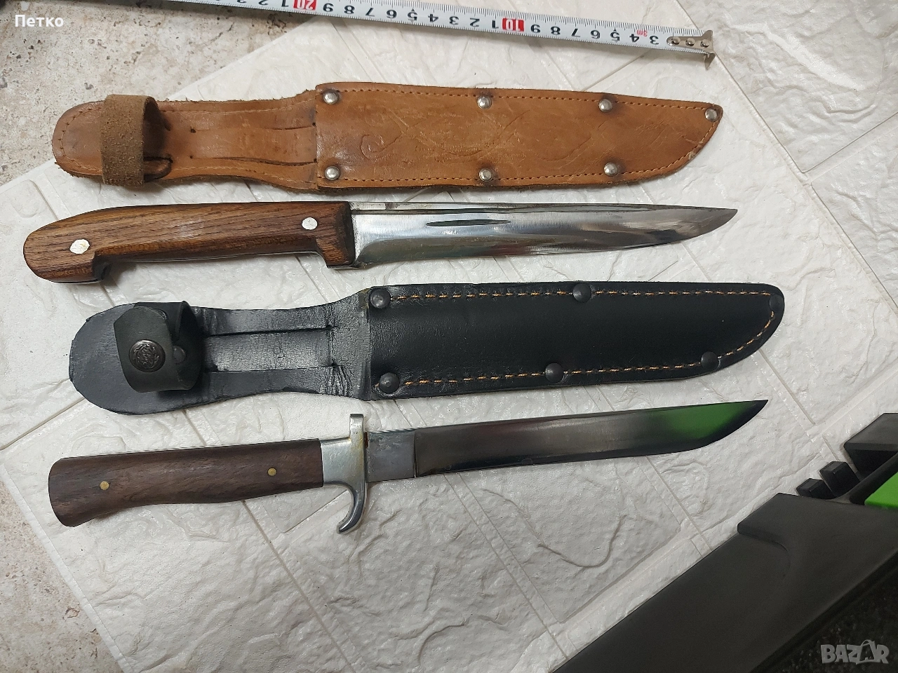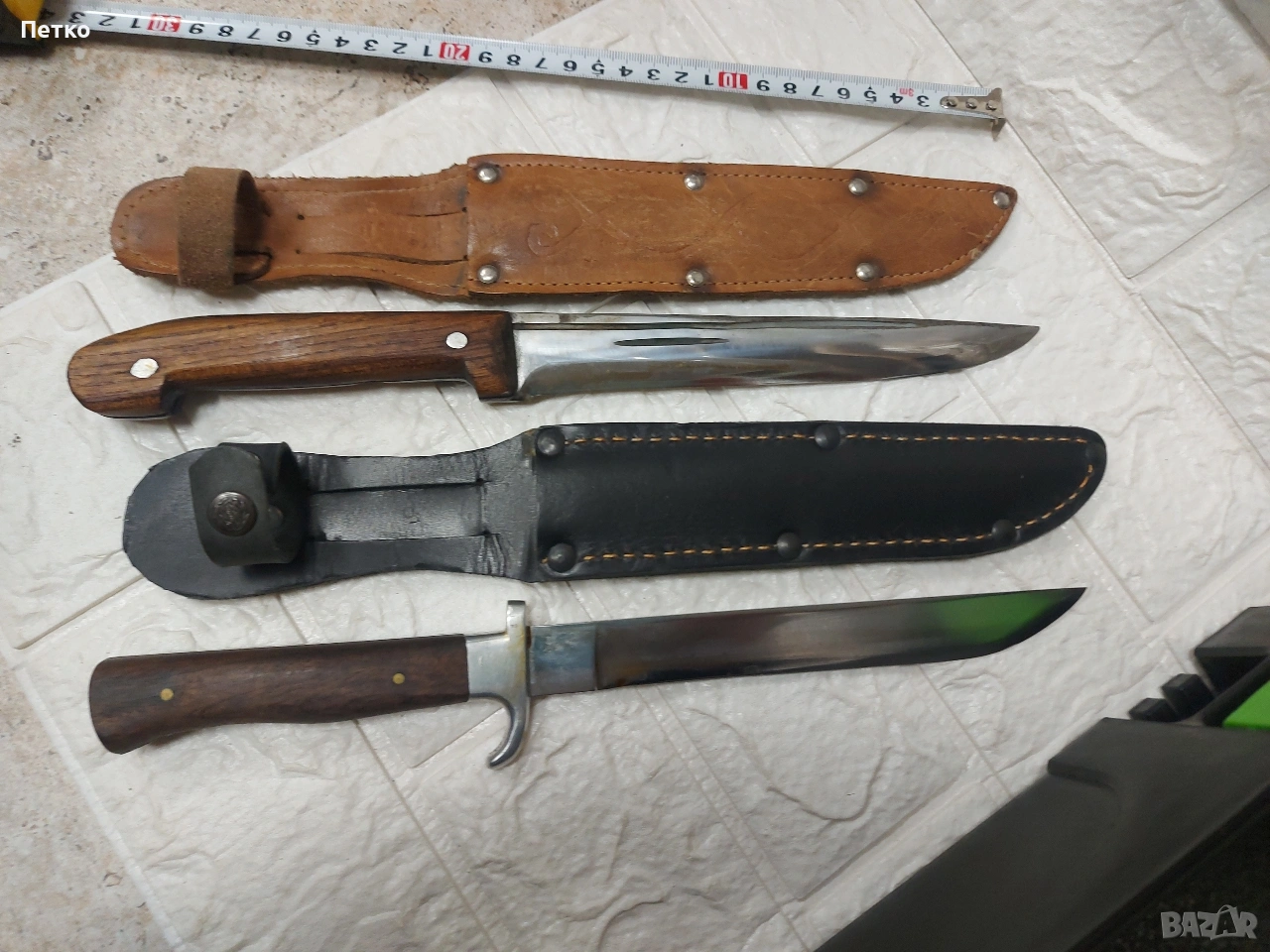 Касапски ножове за колене, с дебелина на острието 4мм, много запазени,с кожени калъфи.