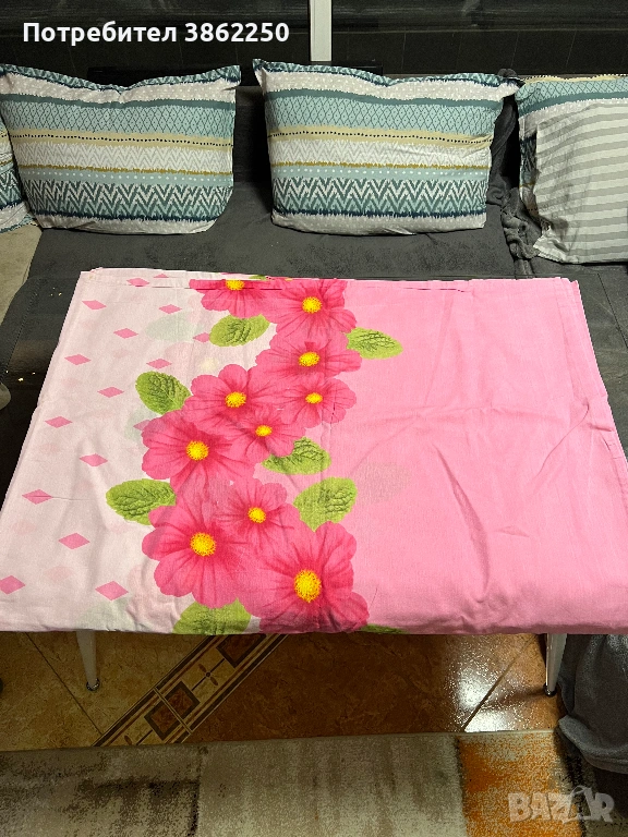 Здравейте продавам този двоен чаршаф, розов, хубав е, мекичък