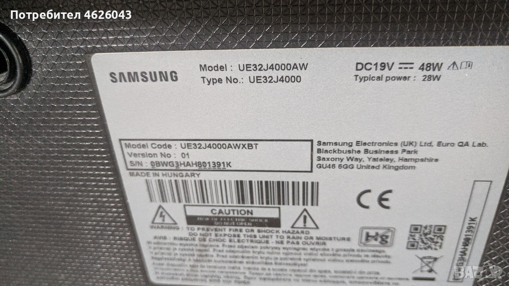 SAMSUNG UE32J4000AW-BN41-02358B → Обява 53037683