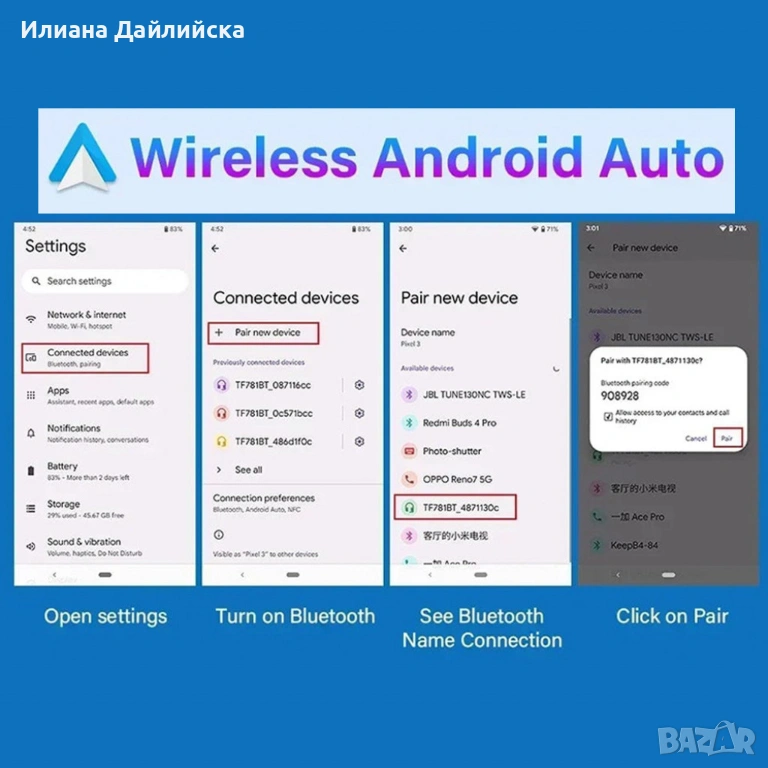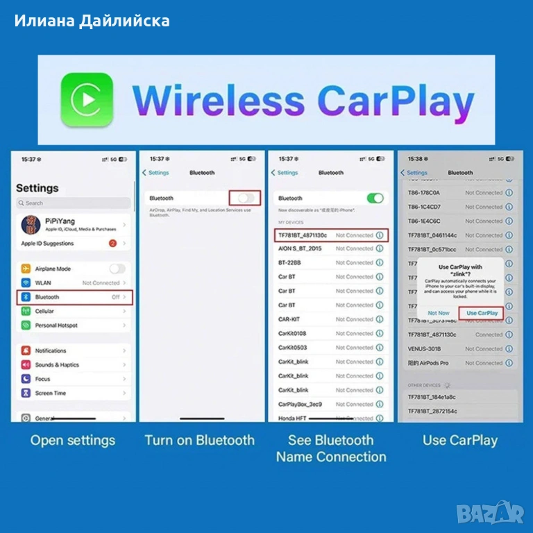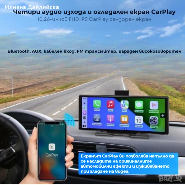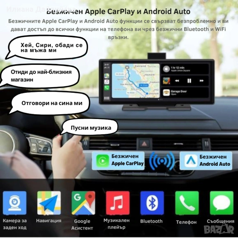 CarPlay+android auto Mirror Link позволява да свържеш телефона си с екрана на колата и да ползваш навигация, медии и др. директно от него.