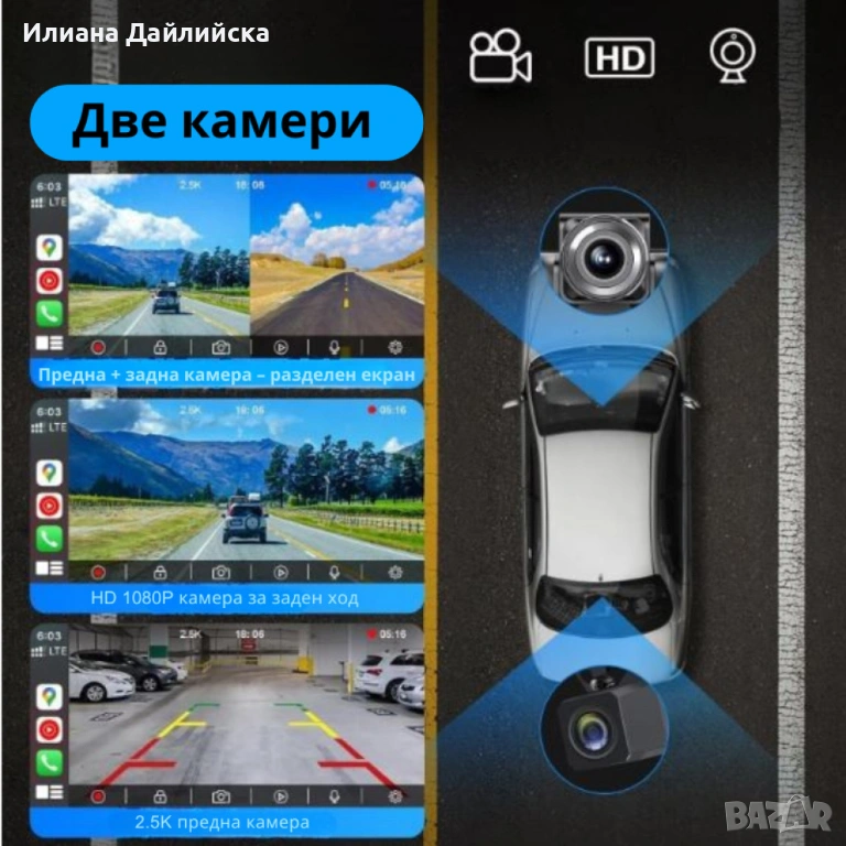 НОВО ЗАРЕЖДАНЕ! Мултимедия H605D-DVR CarPlay Android/iOS Auto 10.26" с 2 камери.