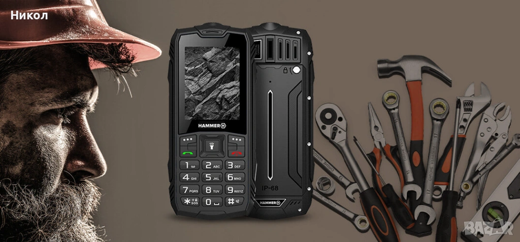 Hammer Rock е телефон с 2.4-екран и здрав дизайн, способен да издържи на природните стихии и падания. Той е като незаменим инструмент за работа - улеснява контактуването, организацията на задачите, а благодарение на мощното фенерче и 1800 mAh батерия е полезен при много различни обстоятелства. Вероятно най-добрият телефон за строителна площадка, работилница или в завода.