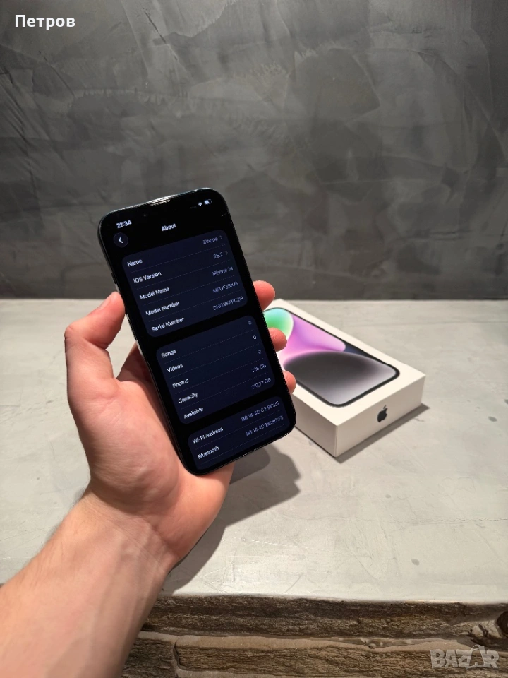 Продавам този невероятно красив Iphone 14 Midnight/Тъмно син - 128 GB в перфектно състояние. Гарантирам, че абсолютно всичко по телефона си работи безупречно и няма каквито и да е технически или физически проблеми. Телефонът седи рестартиран към фабрични настройки, като чака новия си собственик в кутията, който да му се радва :) Батерията издържа от сутрин до вечер без никакви затруднения.