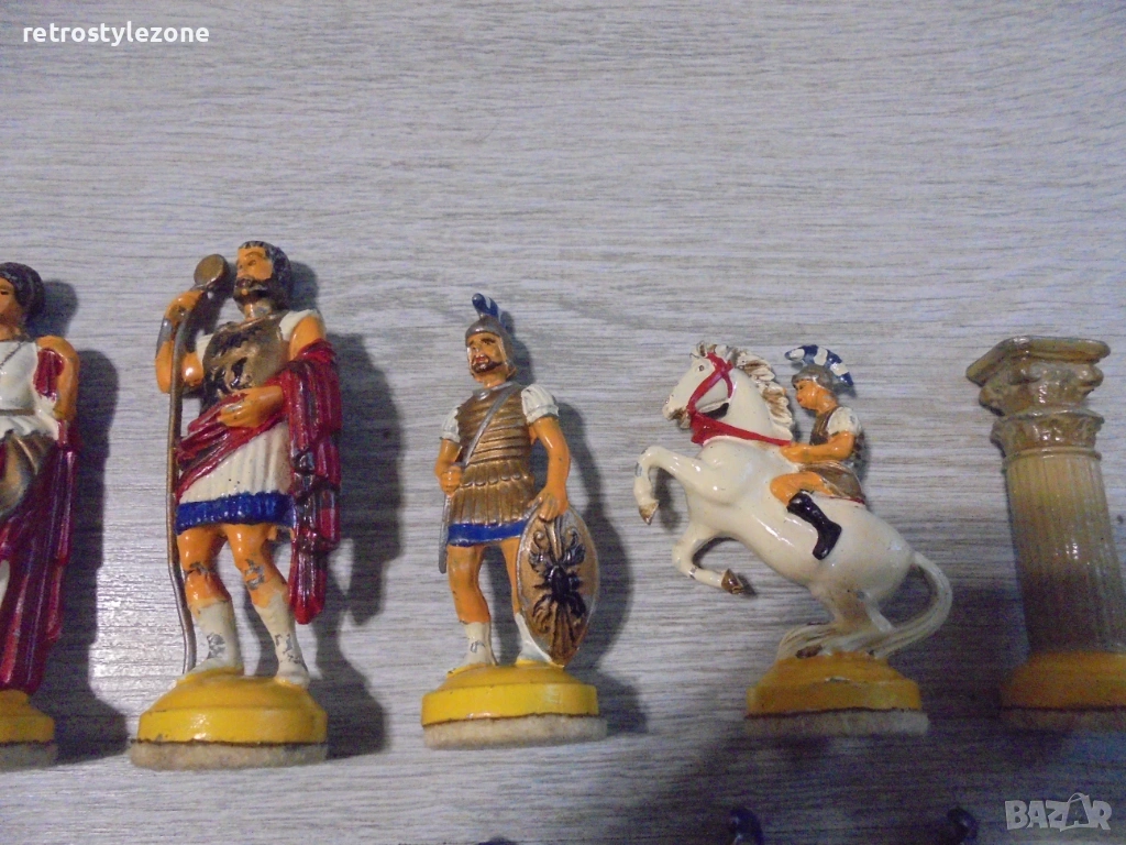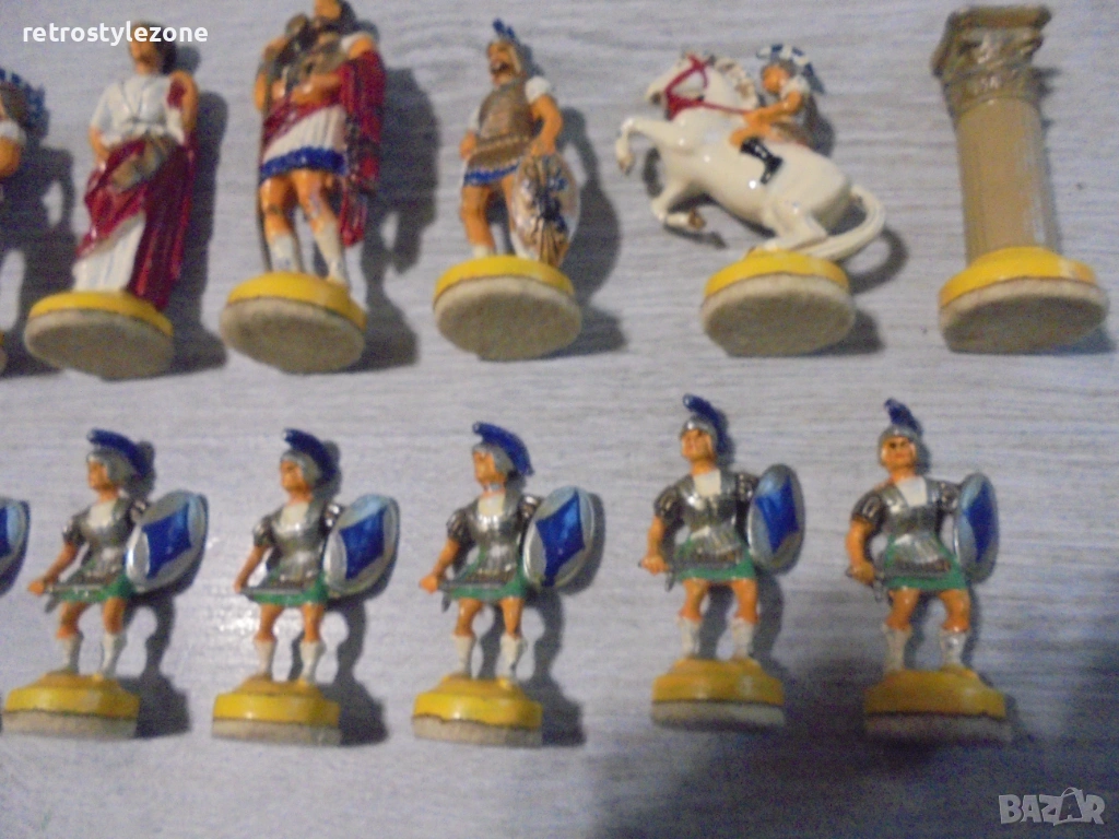 Комплект от 16 броя метални фигурки с антична / римска тематика. Подходящи за колекционери, декорация, настолни игри /шах или подарък.