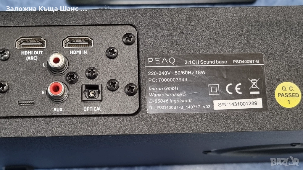 Peaq PSD400BT-B Bluetooth саундборд , снимка 1 - Декове - 53038166 Peaq PSD400BT-B Bluetooth саундборд , снимка 2 - Декове - 53038166 Peaq PSD400BT-B Bluetooth саундборд , снимка 3 - Декове - 53038166 Peaq PSD400BT-B Bluetooth саундборд , снимка 4 - Декове - 53038166 Peaq PSD400BT-B Bluetooth саундборд , снимка 5 - Декове - 53038166 1/5