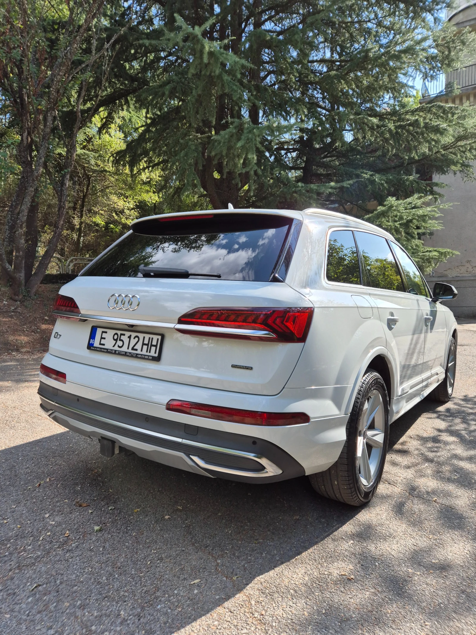 Цена при бартер 75000лв. Колата е с европейски стопове и карти за цяла Европа, Турция и Русия. Винетка до 02. 2027г. Автомобилът е нов внос. Има пълна сервизна история в ауди. Един собственик. Чист карфакс. Колата разполага с почти всички екстри за модела. Може да се прегледа в избран от Вас сервиз по всяко време. Автомобилът е на реални доказуеми километри. Колата е детайлно почистена и е гаражна. В цената на автомобила са включени и 4 чисто нови зимни гуми континентал. Това са част от екстрите на автомобила. Android Auto Car Play KEY LESS GO - Система за безключово отключване, заключване и стартиране на автомобила ! Панорамен покрив Асистент за предпазване от удар Поръчков интериорен цвят Saiga Beigе. Разпознаване на пътни знаци Следене на лентите и връщане в платното Ръчна смяна на скорости с пера зад волана Отопляеми предни седалки - вкл. : предни седалки с електрическо регулиране в 8 посоки с памет за водача и лумбални Отопляеми задни седалки Audi connect PLUS Mobile Hotspot Интернет достъп Безжично зареждане на телефон Audi hands-free trunk opening system (Отваряне на багажника с жест) 3-ти ред седалки, електрическо накланяне, електрическо сгъване в пода Кожен волан Bluetooth Ден-нощ автоматично затъмняващо се огледало за обратно виждане Избледняващо вътрешно осветление Audi connect CARE Tracker System Хладилна жабка Периметърна аларма Имобилайзер Филтриране на въздуха Система за спешни повиквания Предни и задни сензори за паркиране Камера за подпомагане на паркирането Audi pre sense system Индикатор за мъртва точка Предупреждение за напускане на лентата Предупреждение за ниско налягане в гумите Автоматични къси / дълги светлини с изключване Автоматично нивелиране на фаровете LED стопове LED подсветки във вратите Фукция изпрати ме до вкъщи Поставки за чаши отпред и отзад Трансмитер за гаражни врати HomeLink (Програмиране на вашата гаражна врата да се отваря от колата) Круиз контрол HVAC -inc: канали под седалките, рециркулация на остатъчна топлина Осветена заключваща жабка Поставка за краката на водача Пълна подова конзола с покрито място за съхранение, мини горна конзола и 3 електрически контакта 12V DC Електрически задни ключалки за безопасност на деца
