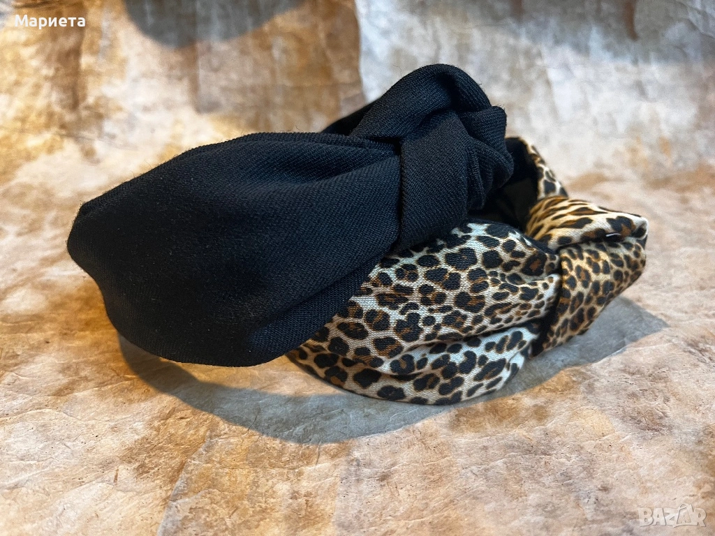 диадеми с възел черна леопардова червено каре Диадема от плат Ръчна изработка → Обява 53038552