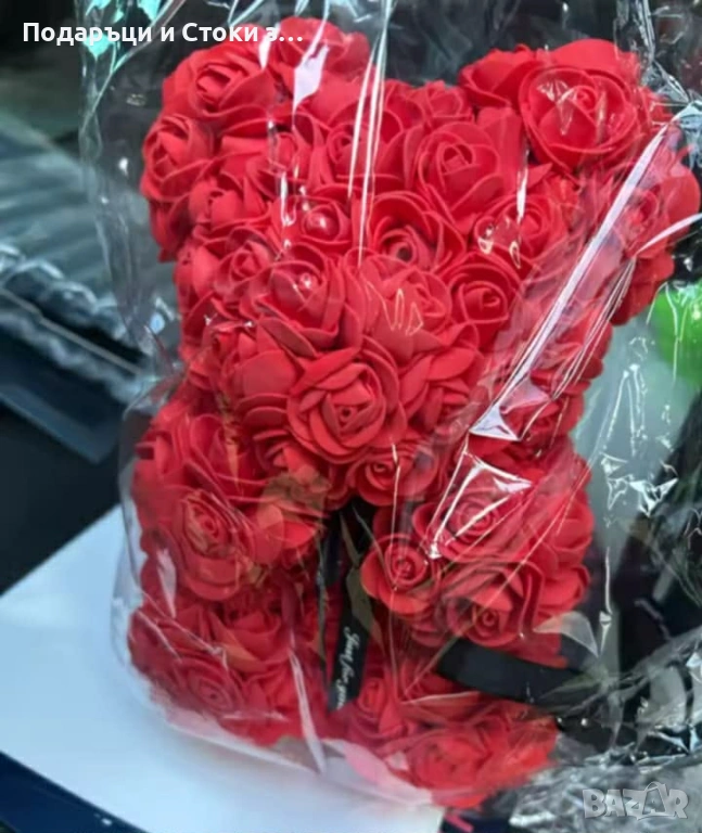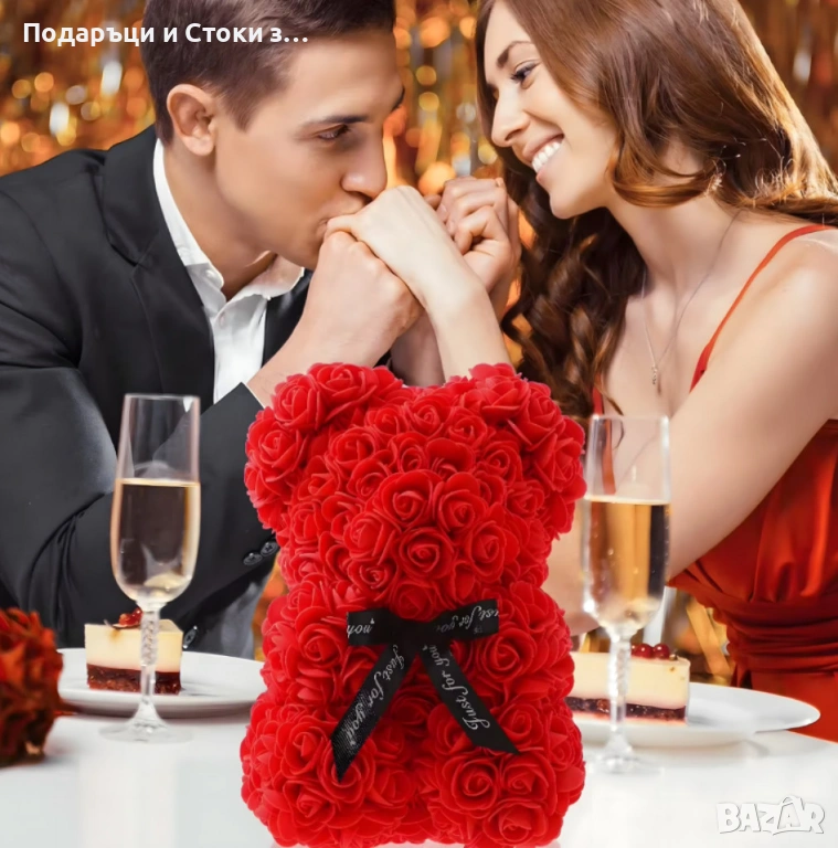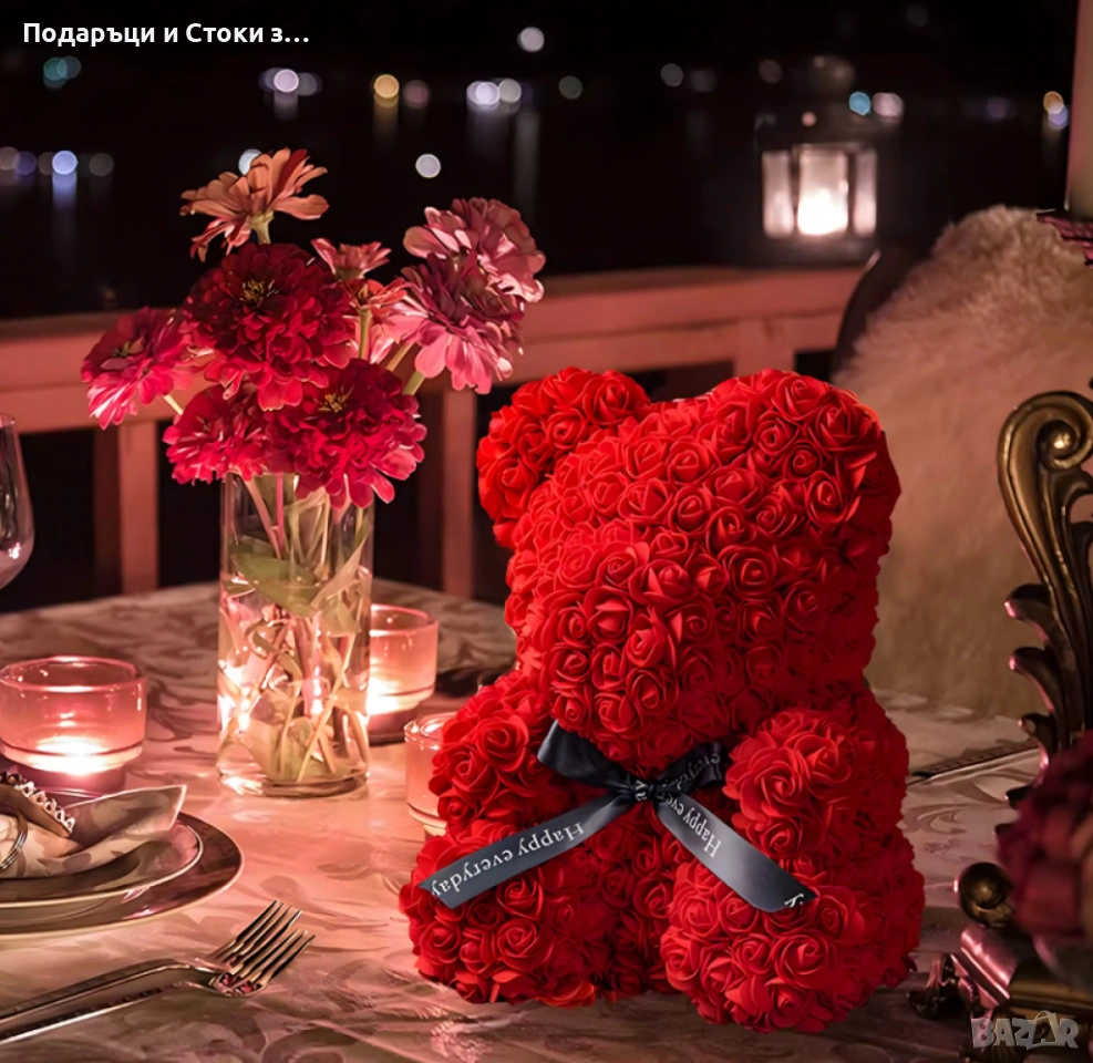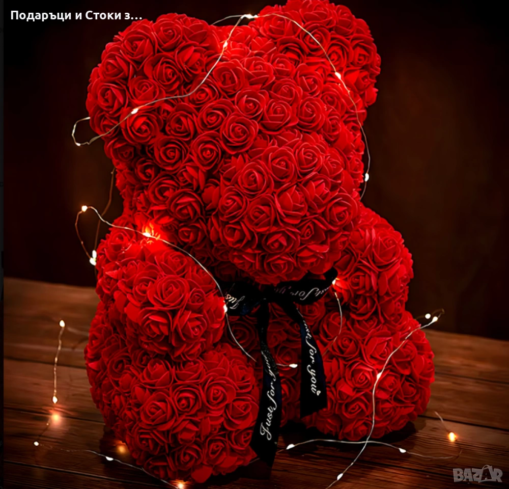 Плюшено мече с LED рози - подарък за Св. Валентин, 8ми март, приятелка