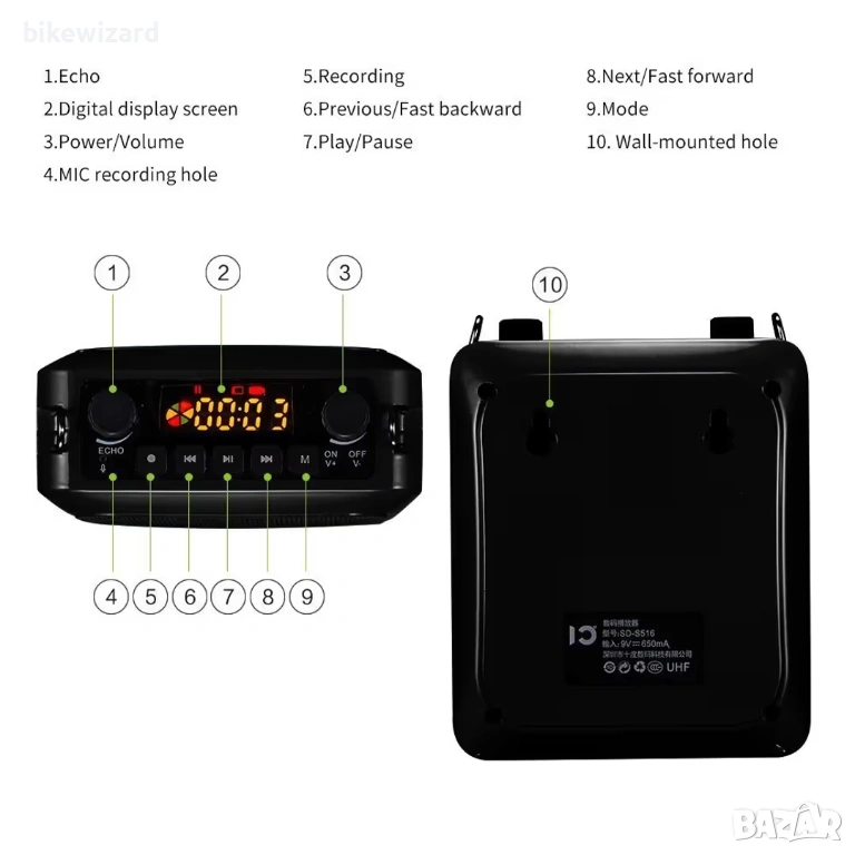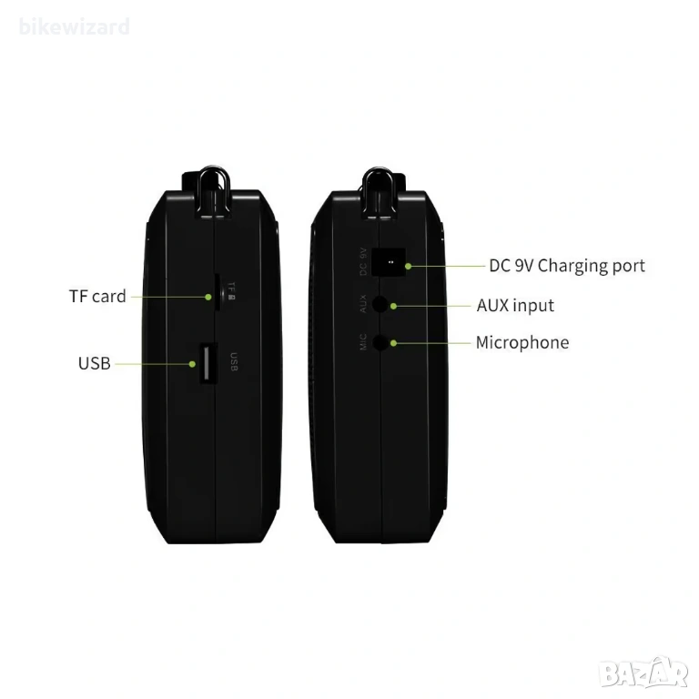 『УСИЛВАТЕЛ НА ГЛАС И BLUETOOTH ВИСОКОГОВОРИТЕЛ』 - Това е не само хубав усилвател на глас, който може да проектира гласа ви ясно и силно, но може да се използва и като Bluetooth високоговорител. Поддържа запис, възпроизвеждане с цикъл, Aux вход, micro SD карта и U диск. 『ВОДОУСТОЙЧИВ IPX5 ДИЗАЙН, ИДЕАЛЕН ЗА УПОТРЕБА НА ЗАКРИТО И НА ОТКРИТО』 - Този Bluetooth усилвател на глас е проектиран със силиконови корпуси и интерфейс, за да осигури водоустойчивост, удароустойчивост, прахоустойчивост, водоустойчивост, устойчивост на дъжд и пясък. Идеален за ежедневна употреба на закрито или открито, като душ, плаж, басейн, лодка, баня, кола, офис и много други. 『ЛЕК И ЛЕСЕН ЗА НОСЕНЕ』 - Преносимият Bluetooth високоговорител е с малки размери и лека кожа. Можете да използвате отделящата се щипка на гърба, за да го закрепите на колана или джоба си, или можете да го завържете около кръста си или да го окачите на врата си с помощта на лентата за колан, много лесен за носене. 『ДЪЛГО РАБОТНО ВРЕМЕ И ДИСПЛЕЙ ЗА НИВО НА БАТЕРИЯТА』 - Акумулаторен гласов усилвател с вградена голяма литиева батерия 4400mAh, която може да издържи до 12 часа възпроизвеждане след пълно зареждане. Състоянието на батерията ще се показва отстрани на високоговорителя, така че вече не е нужно да се притеснявате, че ще се изтощи.