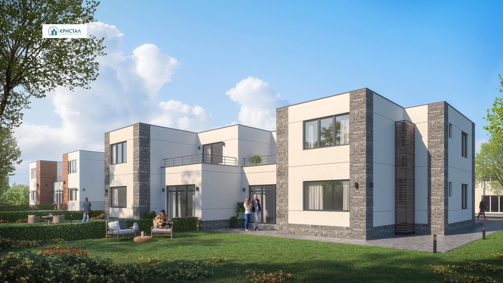 Оферта 26188 Агенция Кристал предлага Нова двуетажна къща в кв. Остромила, до Еврохоспитал. Къщата е с РЗП 312м2, двор 518м2. На първо ниво: входно антре водещо към стълбище, спалня със самостоятелен дрешник и баня с тоалетна, просторно помещение обединяващо дневна с камина, трапезария и кухненски бокс, разполагащо с отделена топла кухня, тоалетна и перално помещение. От трапезарията има излаз на дворното пространство. На второ ниво са разположени три спални, две от които разполагат със самостоятелни бани с тоалетни и тераси, а третата използва обща баня с тоалетна. Една от спалните разполага и с дрешник. Къщата разполага и със сутеренно помещение с площ от 95м2, което може да бъде използвано за сервизни нужди, складиране, фитнес и др.Къщата е завършена на акт 15, без преградни стени, което позволява на новия собственик да организира помещенията по свой вкус. Имотът ще бъде издаден завършен на шпакловка и замазка, с блиндирана входна врата и с разрешение за ползване. Има възможност да се прекара газ до имота, както и да бъде изградено подово отопление. Имота е с ток,вода, канализация. От южната страна на имота е разположен двора на къщата, който разкрива гледка към Родопите и новоизграждащ се парк. От северната страна на имота са разположени две паркоместа, които по желание на новия собственик могат да бъдат затворени и като гараж. Достъпът до къщите е осигурен посредством частен асфалтирани път. Агенция Кристал оказва пълно съдействие за банково кредитиране, при най-добри условия и цялостна юридическа проверка на имотите, които предлагаме. Може да прегледате всички наши обяви в сайта ни https://crystalimoti.com. За повече информация се обадете телефон 0882 49 84 42.