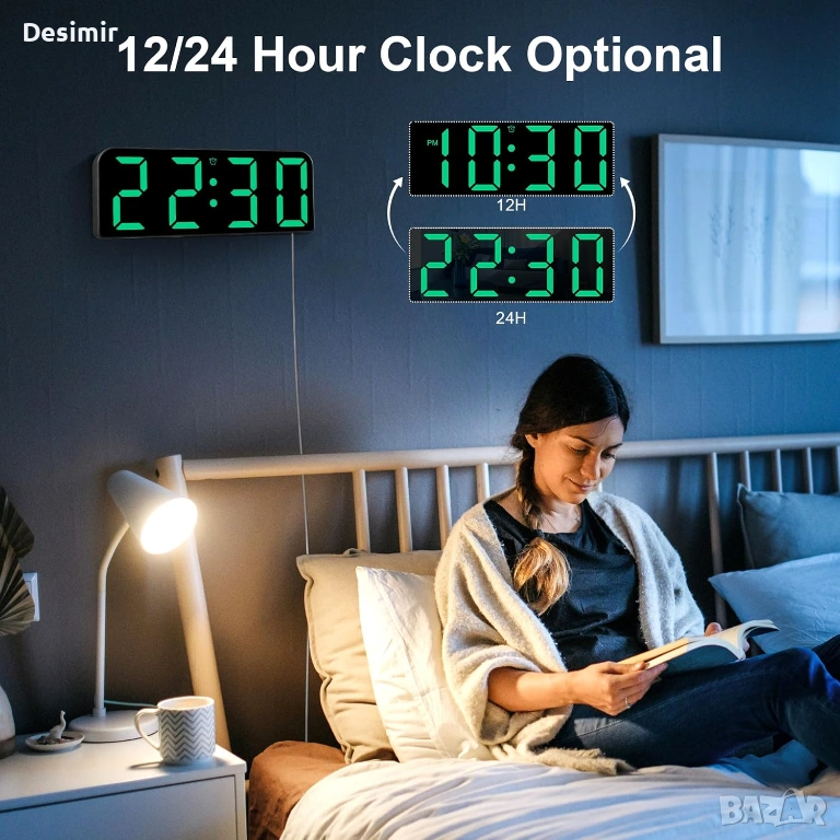 дигитален часовник, стенен часовник, часовник с аларма, часовник с дистанционно, безшумен часовник, часовник с голям дисплей, LED часовник, часовник за офис, часовник за спалня, часовник за училище