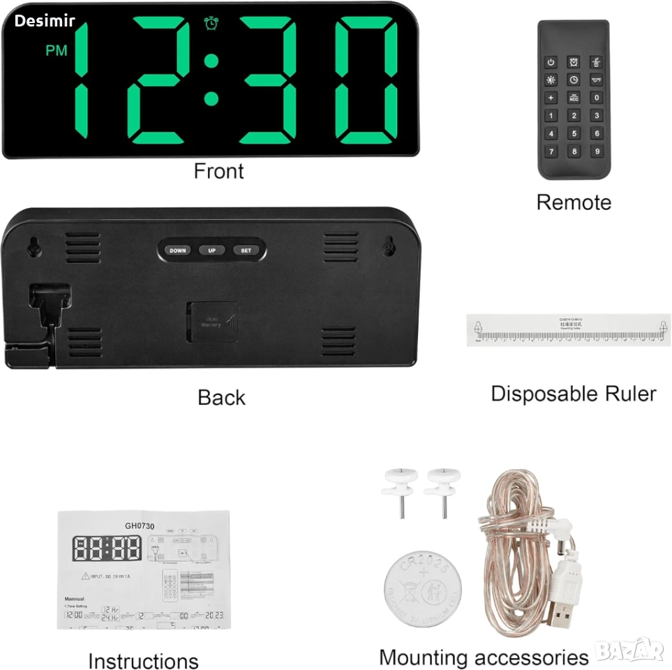 Тип: дигитален часовник (стенен или настолен)