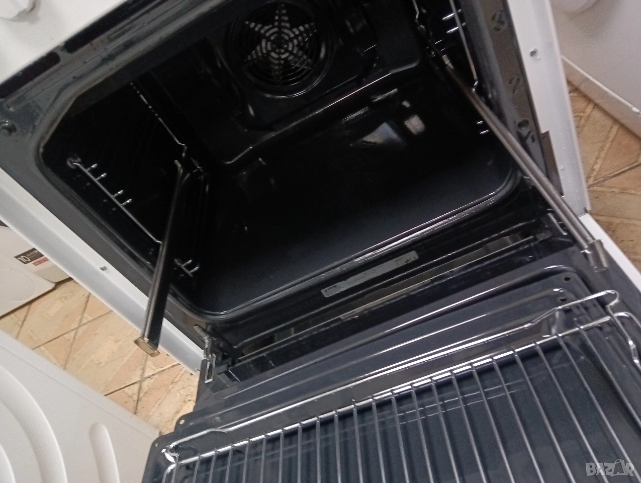 Широка печка 60 см с широка фурна с вентилатор, грил, телескопични решетки, плавно затваряне на вратата и др.