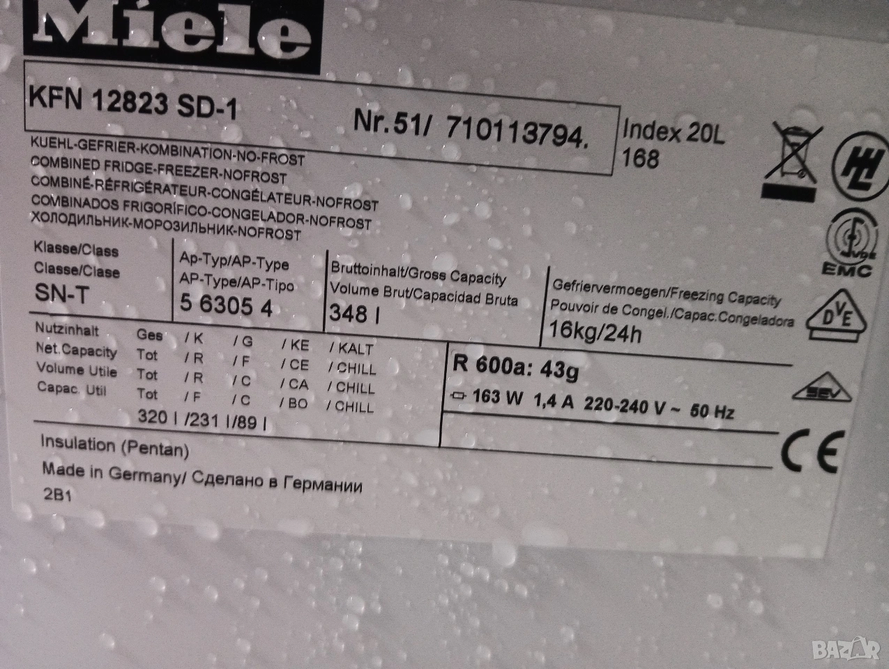 Комбиниран хладилник с фризер Миеле Miele Made in Germany с две години гаранция!