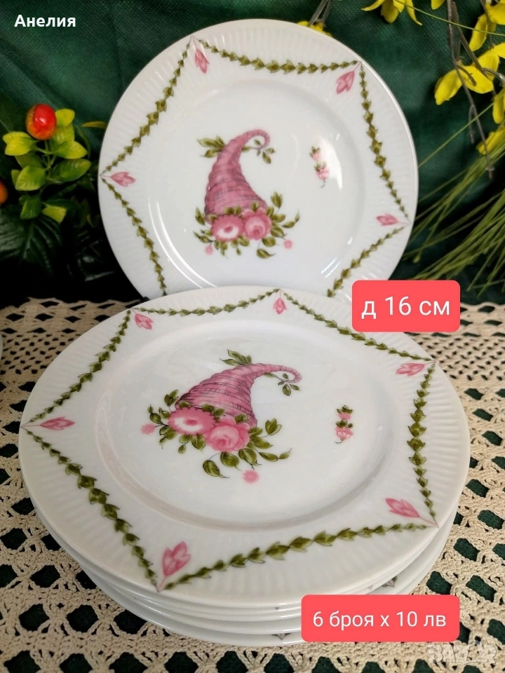 🌸6 десертни чиниики 16 см х 10лв/5.11€