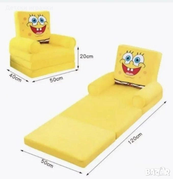 Плюшен детски разтегателен фотьойл, кресло, пуф, Батман/Спондж боб