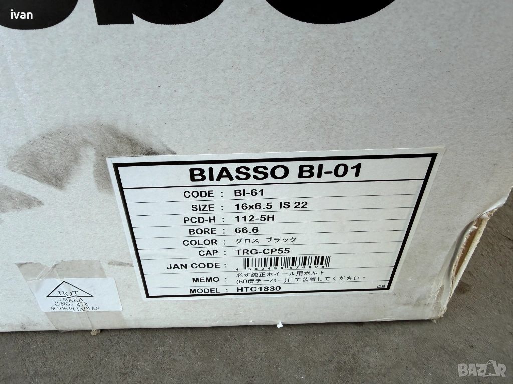 Продавам 4 бр. чисто нови алуминиеви джанти BIASSO 16'' 5x112 , централен отвор 66.6 , ET22, 6.5J.