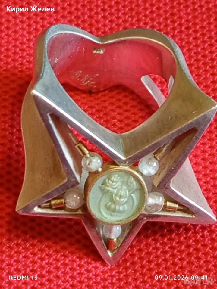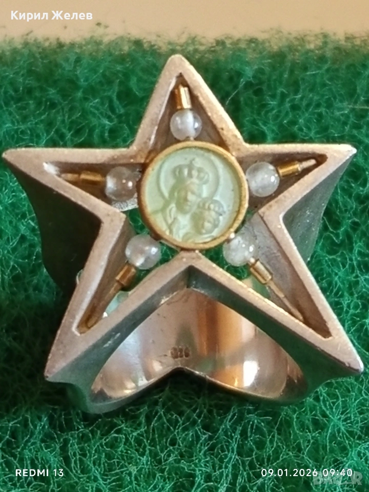 Сребърен пръстен на Ордена на Източната звезда масонски свързан дамски помощен орган уникат 52989