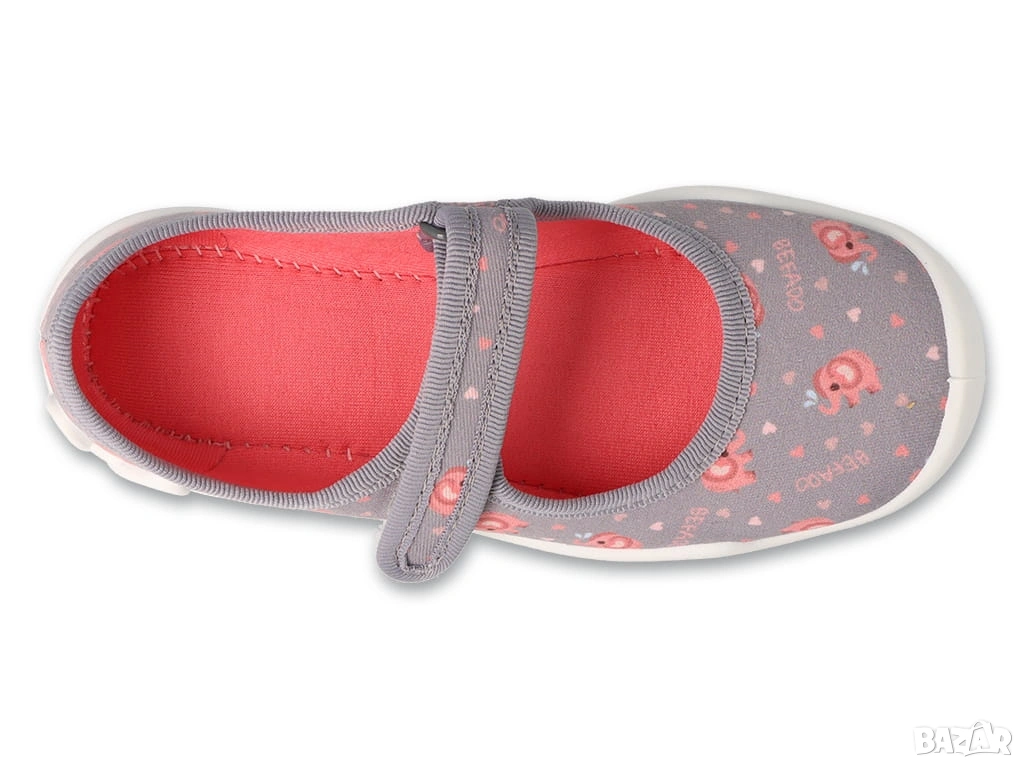 Детски пантофи "BEFADO". Цена - 15.90 евро. Размери - 18, 19, 20, 21, 22, 23, 24, 25, 26, 27, 28, 29, 30, 31, 32, 33, 34, 35, 36. Бърза поръчка - 0897404031. Befado" е полска марка с дълга традиция в производството на детски обувки — над 80 години история и фокус върху качество, комфорт и безопасност за детските крака. Удобни и дишащи, подходящи за ежедневна употреба, с добра анатомична форма, която подпомага здравословното развитие на детските крачета, лесни за обуване (особено за по-малките деца), с добър захват и стабилност. Те са изработени от естествени материали, които предотвратяват изпотяване и са подходящи за чувствителна детска кожа, с анатомична подметка и стабилна пета, леки и удобни за дълги дни в детската градина или игра навън.