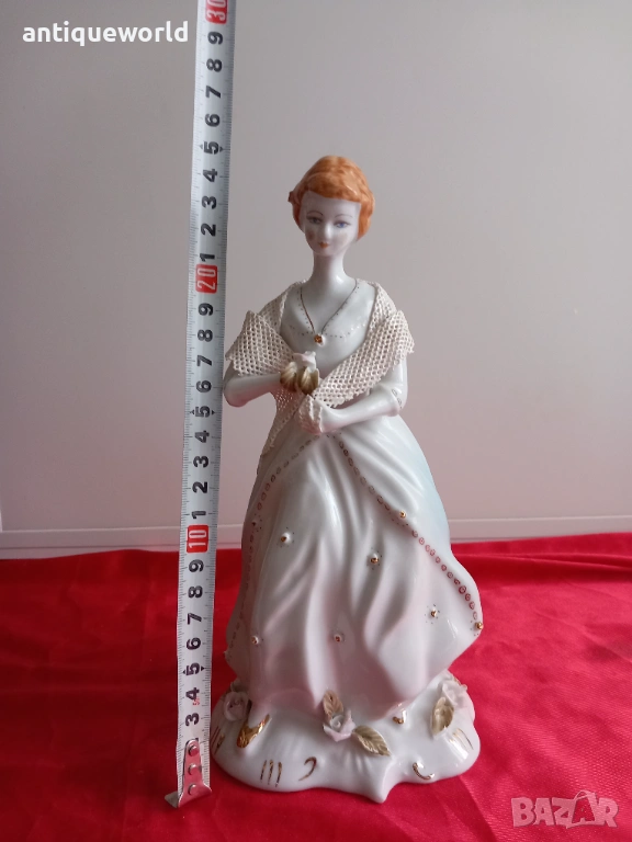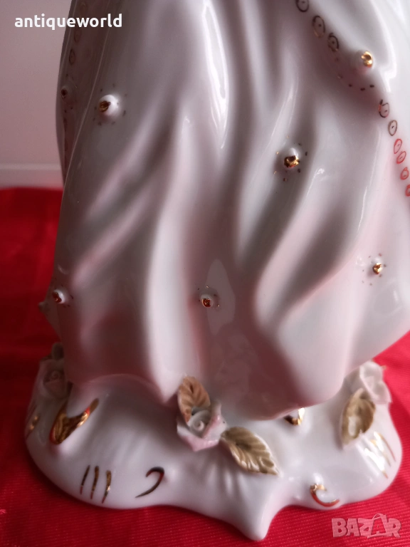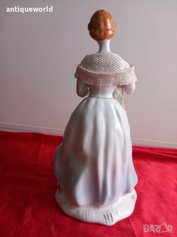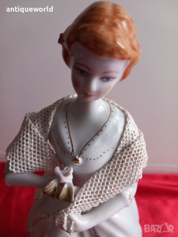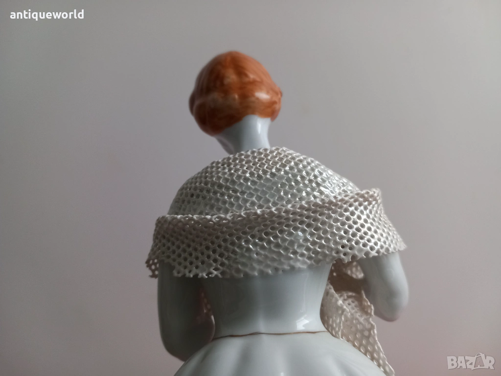 Много Красива Голяма Порцеланова Статуетка,Фигура ДАМА с Шал Дрезденска Дантела на Манифактурата Stipo Dorohoi.Маркирана.Перфектна!