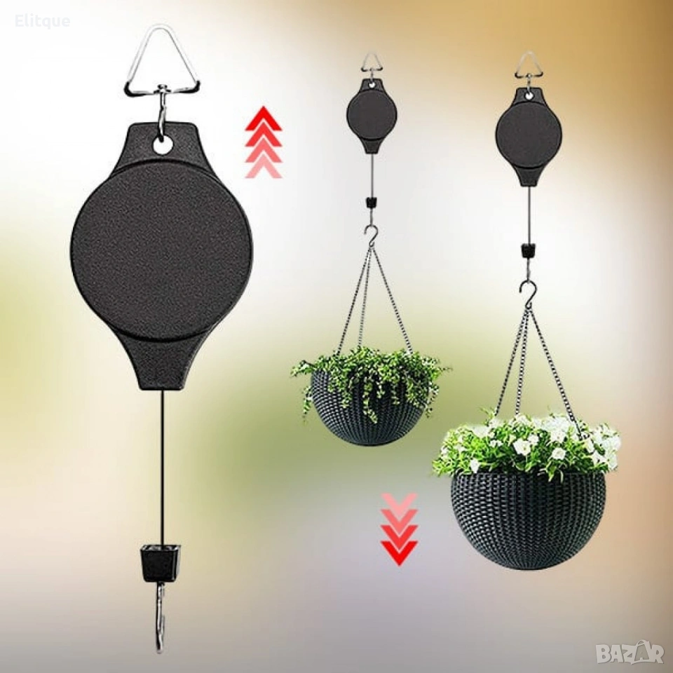 Телескопична градинска кука с прибираща се макара за висящи растения и декорации