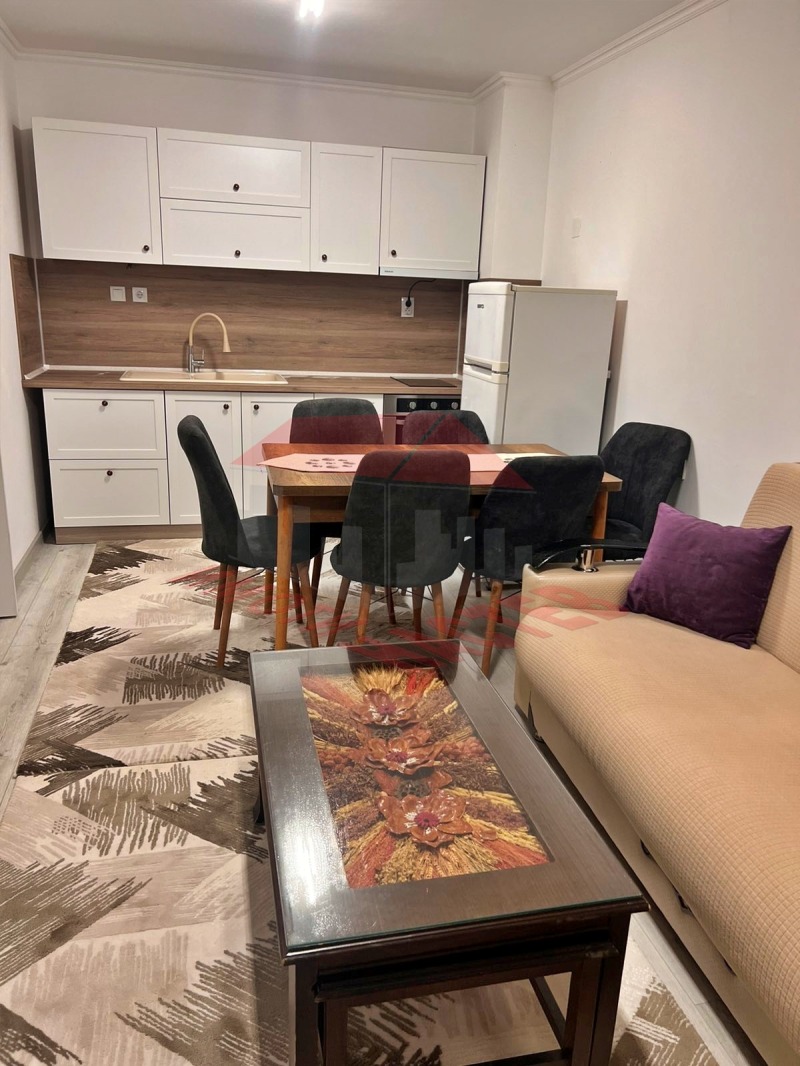 ИМОТИ НАСТЕВ отдава под наем двустаен апартамент в нова сграда, с паркомясто, разположен в непосредствена близост до болницата. Жилището се намира на 4-ти етаж и се състои от входно антре, просторна всекидневна с кухненски бокс, спалня, баня с WC и тераса. Апартаментът се отдава напълно обзаведен и оборудван, готов за нанасяне. Отоплението и охлаждането са решени посредством климатици.