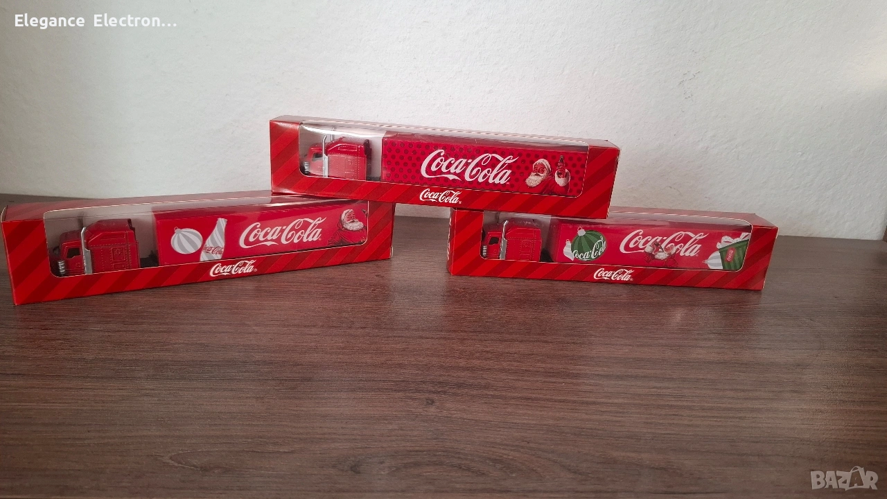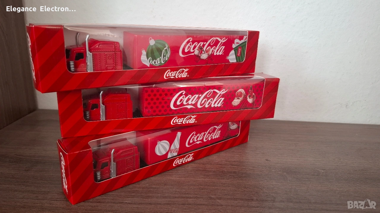 Продавам комплект от 3 броя колекционерски Coca-Cola коледни камиончета. Всички са чисто нови, неразопаковани, в оригиналните си кутии. Идеални за: 🎁 коледен подарък 🧸 колекционери 🎄 декорация ✔️ Състояние: Нови ✔️ Марка: Coca-Cola ✔️ Количество: 3 броя – продават се като комплект 💰 Цена: 50 € (≈ 100 лв) за комплекта 📦 Изпращам с куриер (Еконт/Спиди) с опция преглед и тест 📍 Възможно лично предаване