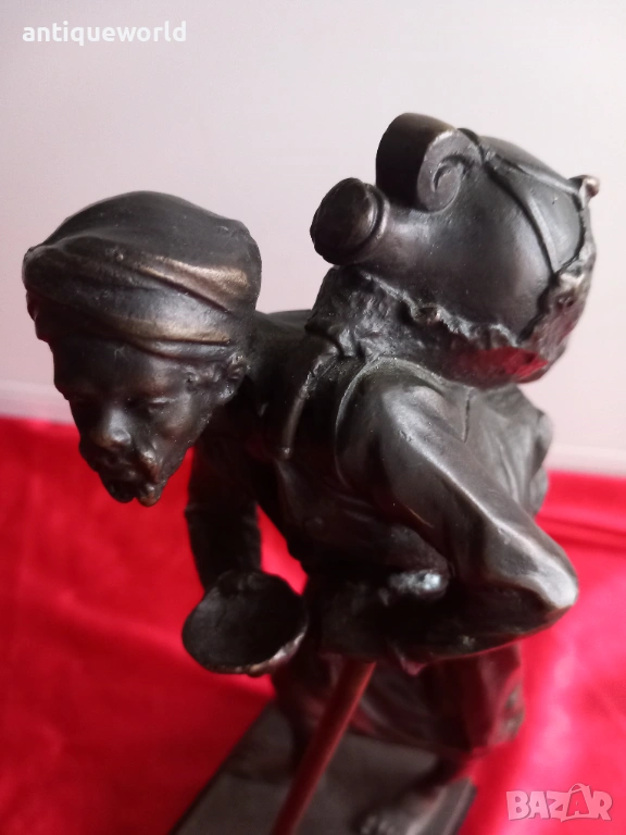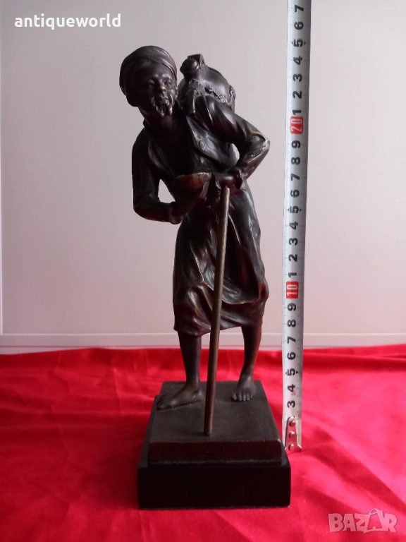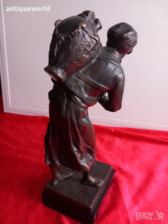 Уникална Масивна Авторска Бронзова Пластика,Статуетка Арабски Продавач на Вода сГлинена Кана на Гърба.Творба на Немския Скулптур Paul Ludwig Kowalczewski (1865-1910г.).Перфектна.Налиюни Маркировки.