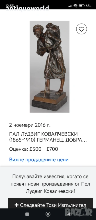 P.Kowalczewski Авторска Бронзова Пластика Статуетка Продавач на Вода