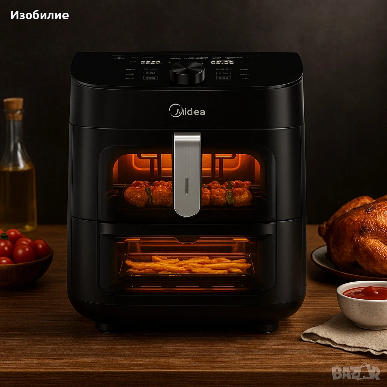Еър Фрайър 2 в 1 - 11L - Midea MAD1100DADK - С две зони за готвене, 10 програми и 360° циркулация на → Обява 53040713