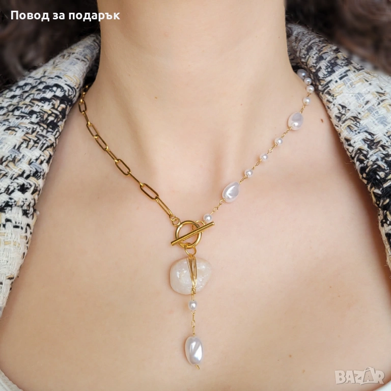 Дамско колие с естествен кварц , снимка 1 - Колиета, медальони, синджири - 53040748 Дамско колие с естествен кварц , снимка 2 - Колиета, медальони, синджири - 53040748 1/2