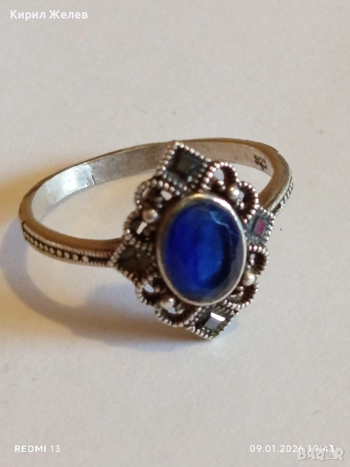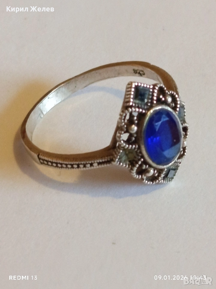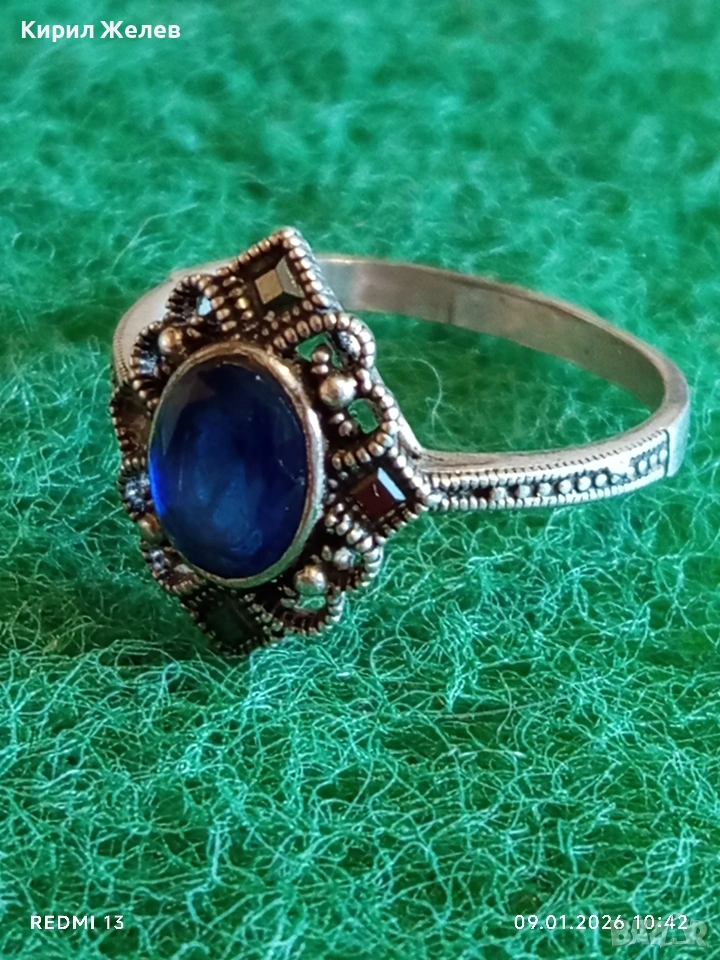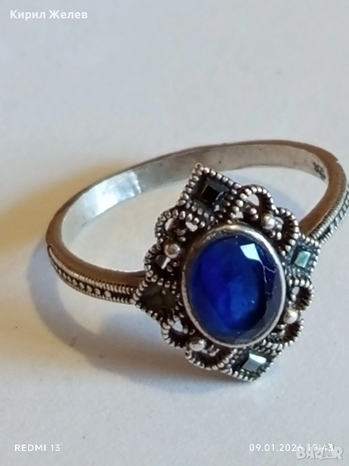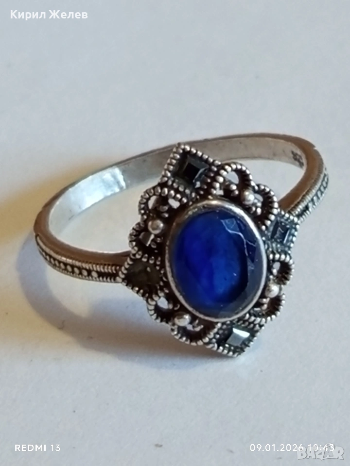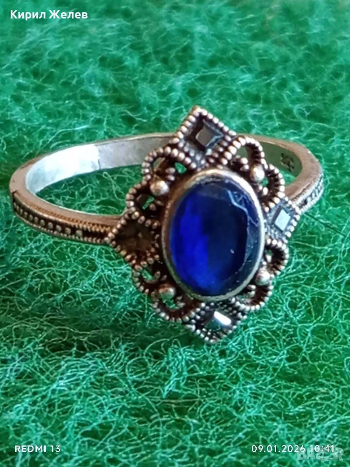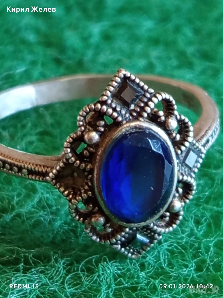 Сребърен пръстен с САПФИР повлиян от Викторианската епоха стил Арт Деко филигранна изработка 43320