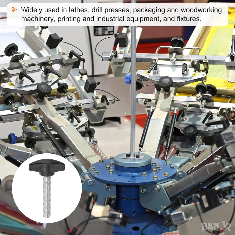 Приложения - Дръжките с крилчати винтове и ръчни болтове обикновено се използват в приложения, които изискват чести и бързи настройки или затягане. Широко използвани в стругове, пробивни машини, опаковъчни и дървообработващи машини, печатарско и промишлено оборудване, както и приспособления.