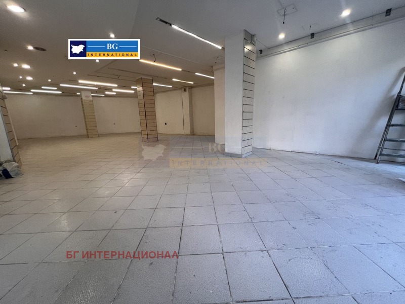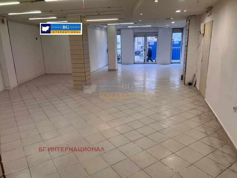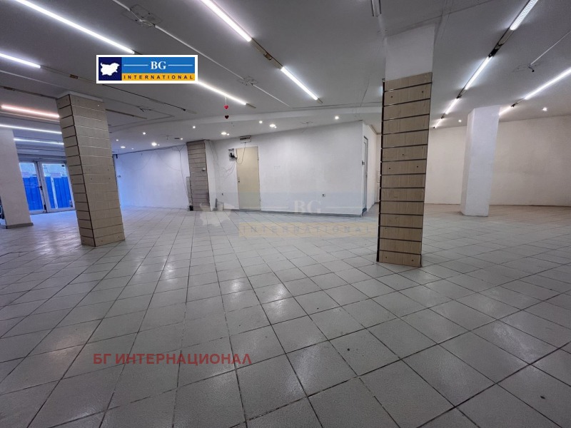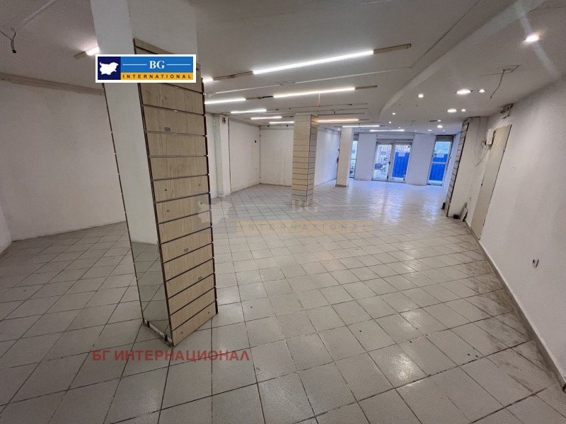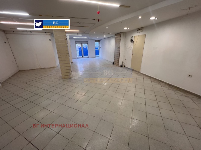 Предлагаме под наем партерно помещение за търговска дейност на първи /партерен/ етаж, с търговска площ от 126,00 кв.м., ведно с прилежащите спомагателни помещения : санитарен възел с площ от 10 кв.м. в югоизточния край на етажа и предверие с площ от 12 кв.м., или общо застроена площ: от 148,00 кв.м. както и заедно с 21,00 кв.м. идеални части от общите части на сградата, които общи части обхващат: главно стълбище, асансьорна шахта и прилежащ към тях коридор и заедно с останалите прилежащи общи части от цялата сграда. Възможно е да бъде пригодено за различни дейности и бизнеси по желание на клиента.