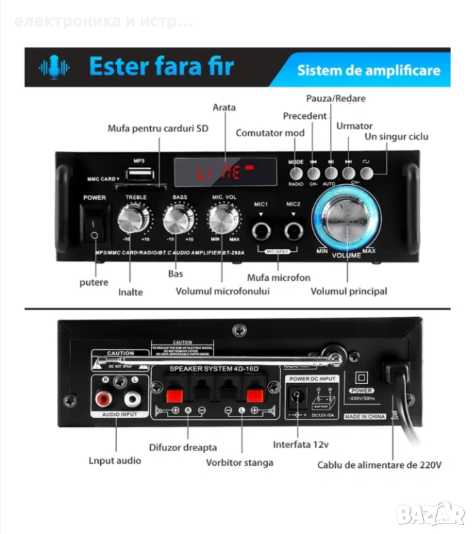 !!!БЕЗПЛАТНА ДОСТАВКА!!! Аудио усилвател за кола с дистанционно 12v Домашен усилвател и на ток