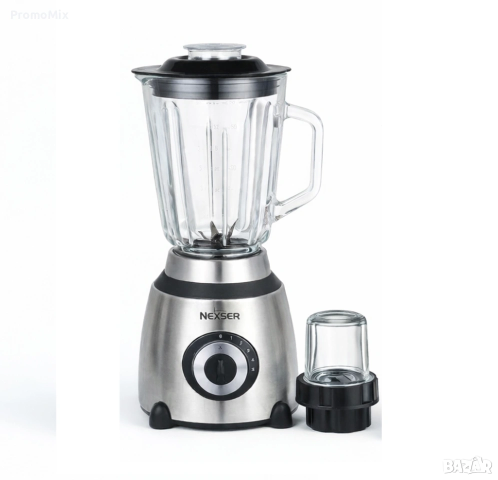 Блендер 2в1 Nexser NS1841S 1.5л 600W Мелничка Чопър Стъклена кана Лед Смути Шейк