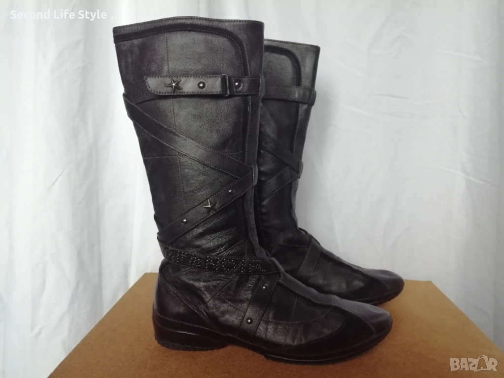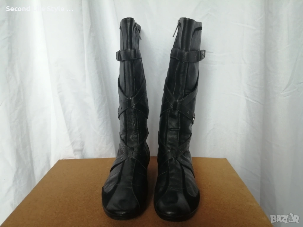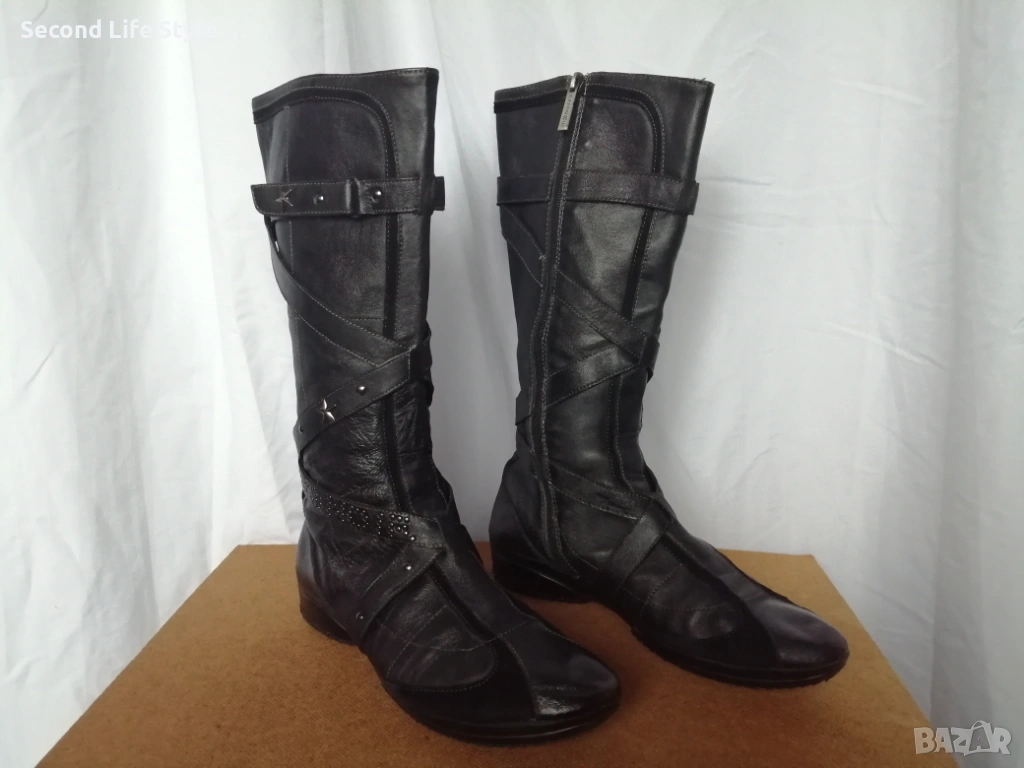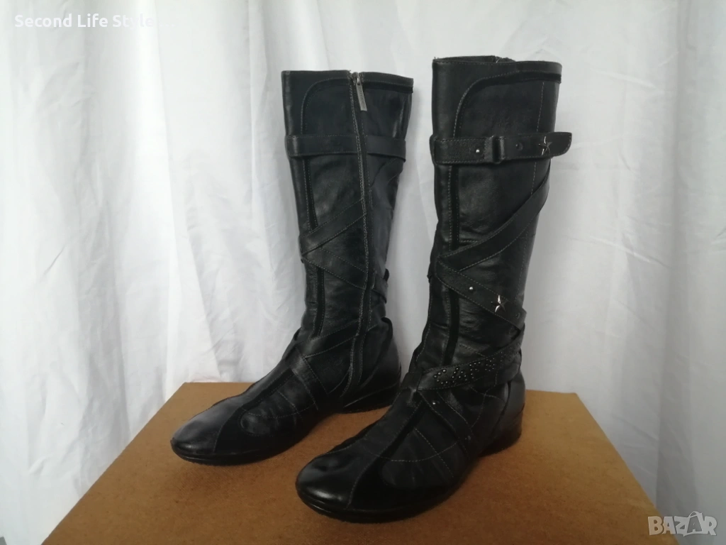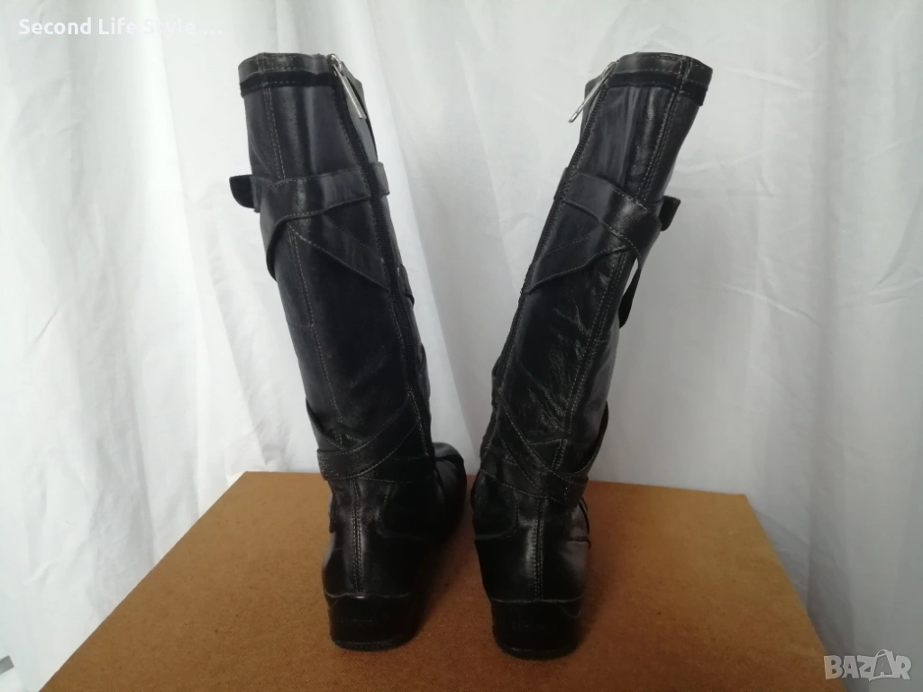 №39 CafèNoir дамски ботуши естествена кожа в черен цвят