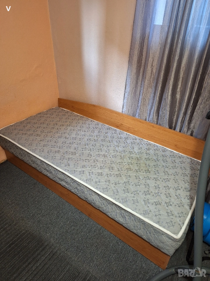 единично легло с пружинен матрак, повдигащ механизъм с ракла за съхранение. размер 82/190
