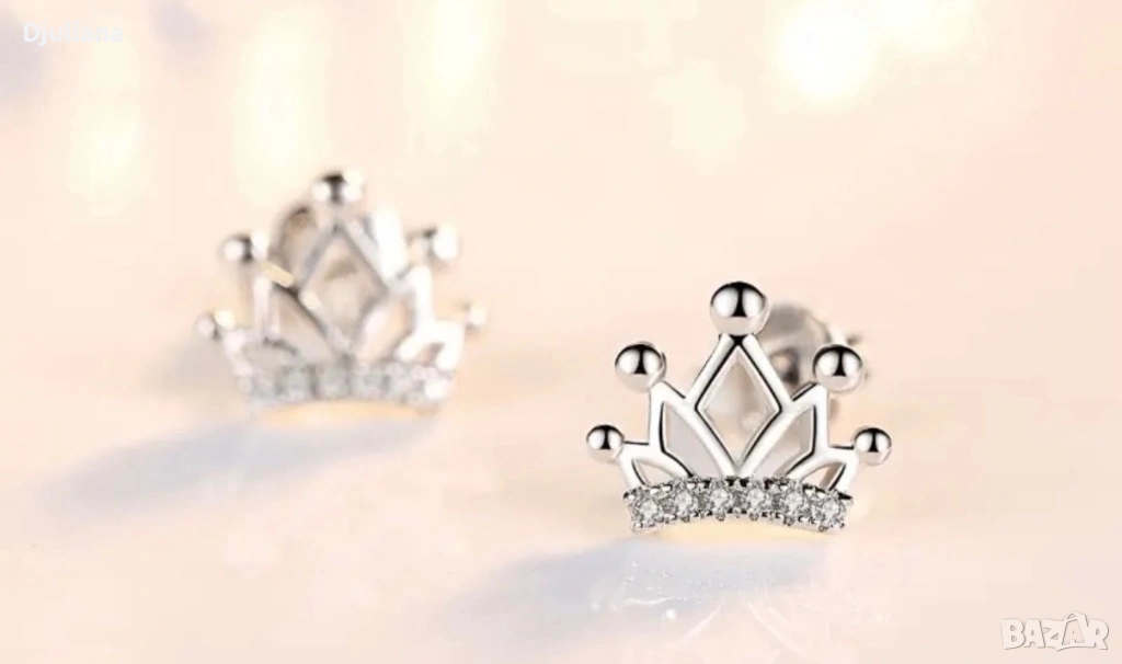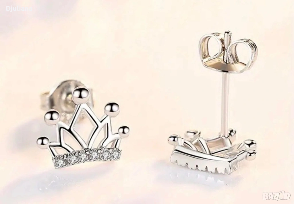 Сребърни обеци коронки, снимка 1 - Обеци - 53042224 Сребърни обеци коронки, снимка 2 - Обеци - 53042224 Сребърни обеци коронки, снимка 3 - Обеци - 53042224 1/3