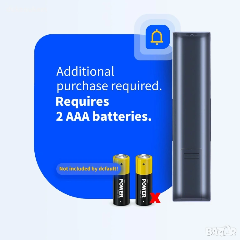 Захранване: 2 × AAA батерии (❌ не са включени)