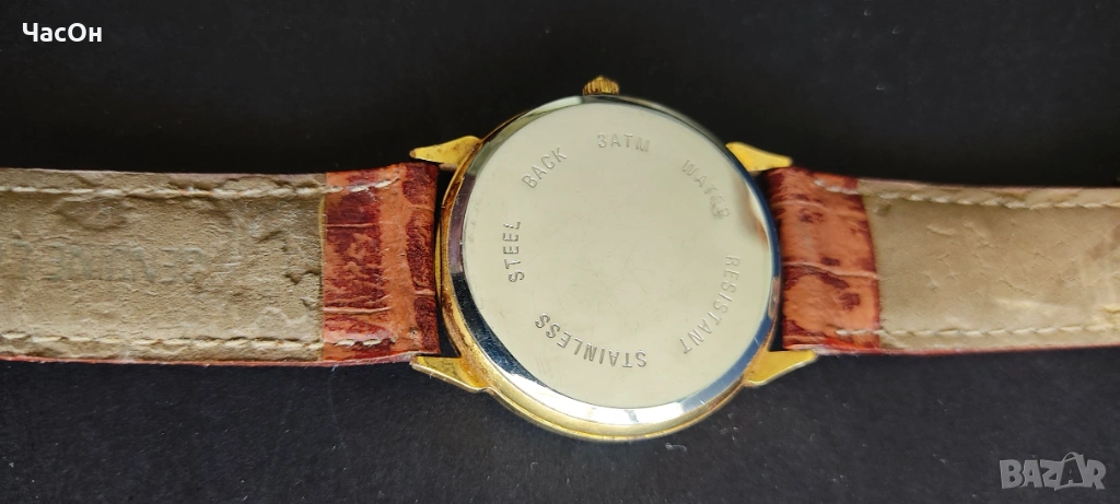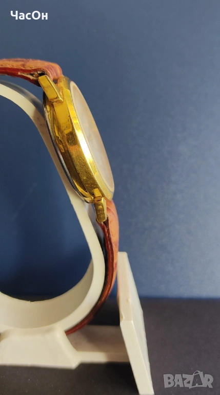 Часовникът е с оригиналната си кожена каишка. Отвън е без забележки, но по вътрешната /долната/ част личат следи от употреба. Каишката е дезинфекцирана и обработена с препарат за омекотяване и съхранение на кожа.